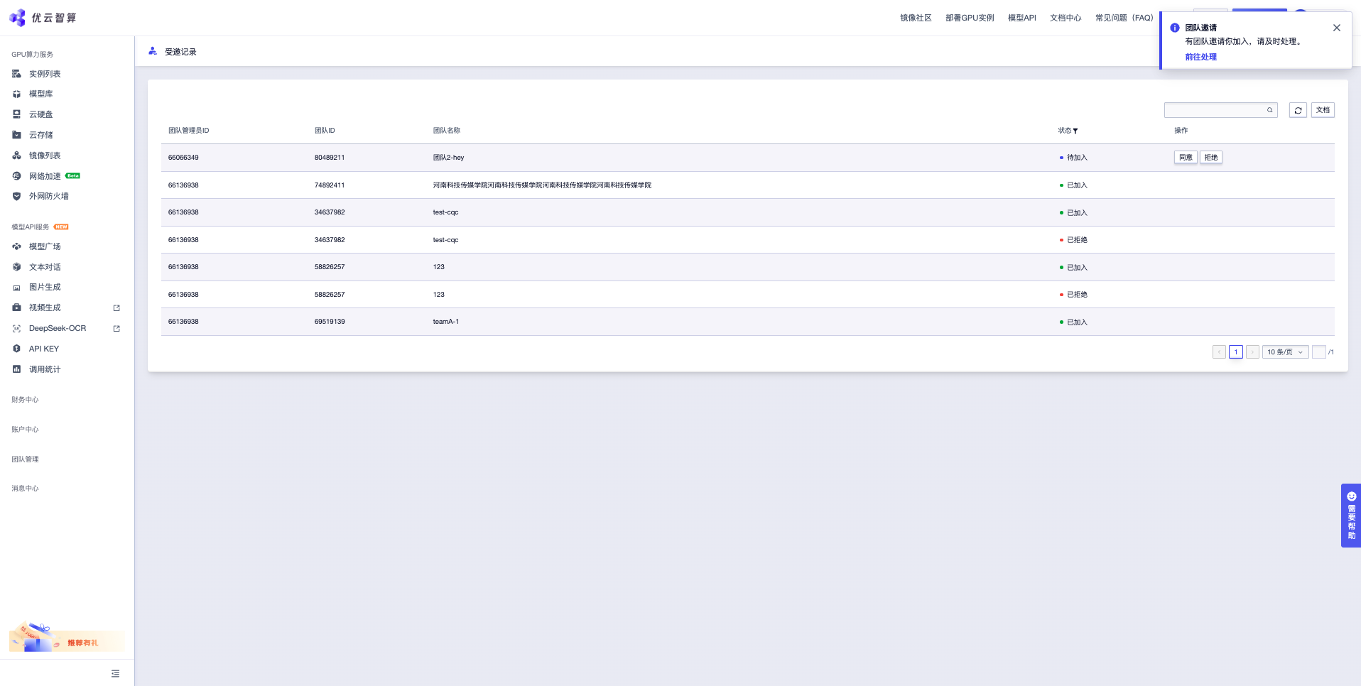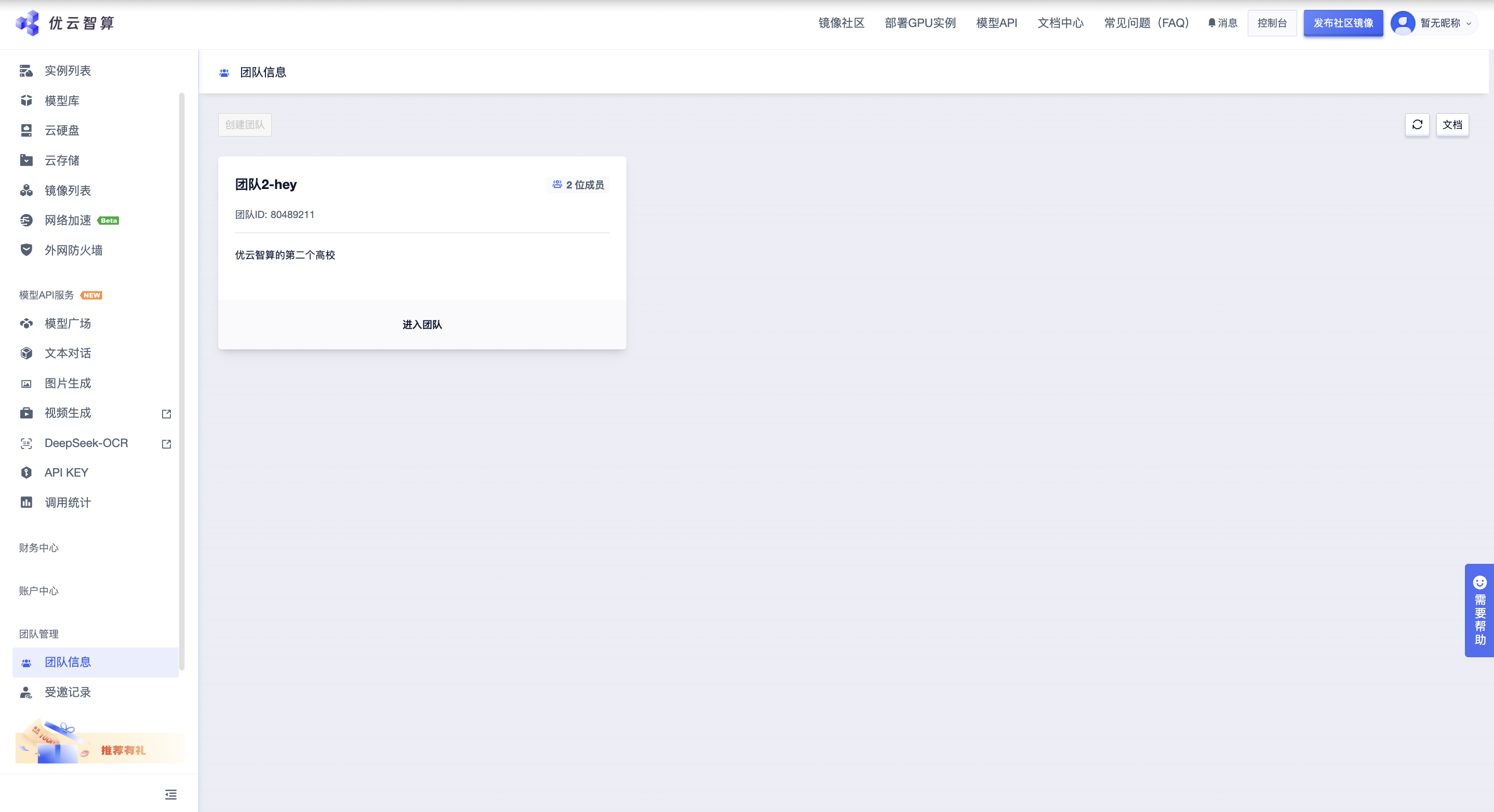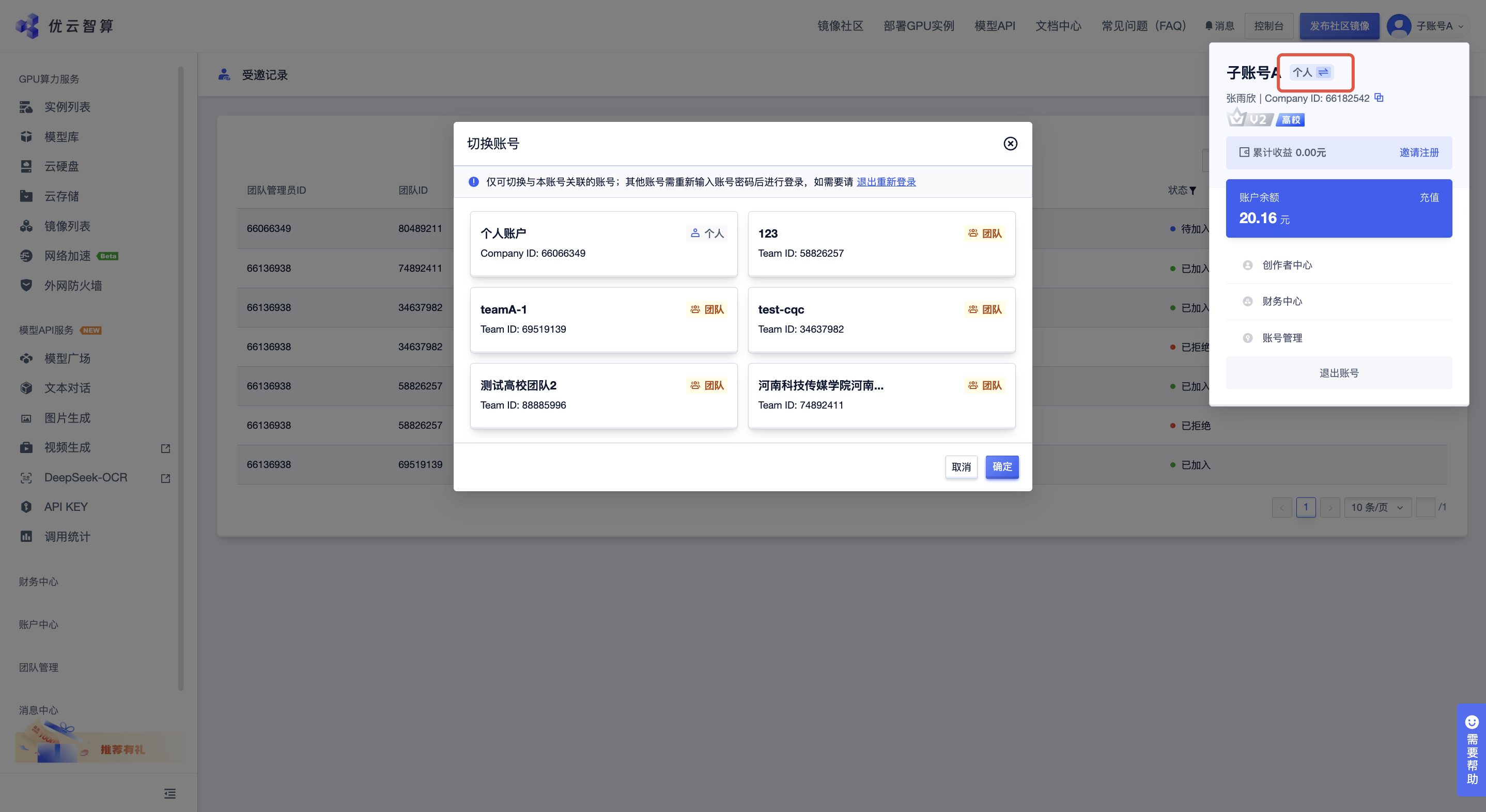 Team 视角下的所有消费都只扣此团队子账号的余额。