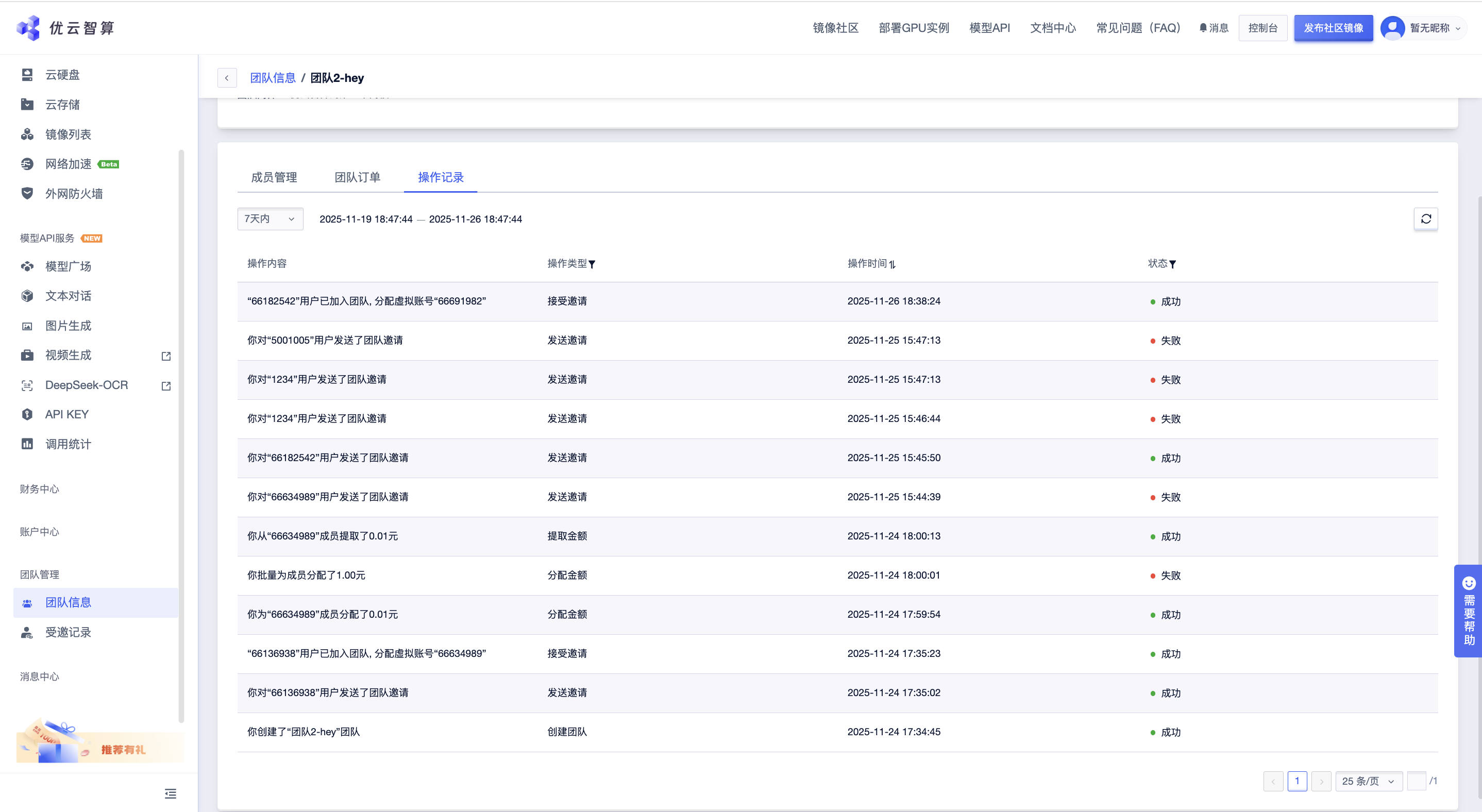 团队管理 → 进入团队 → 团队订单 → 操作记录