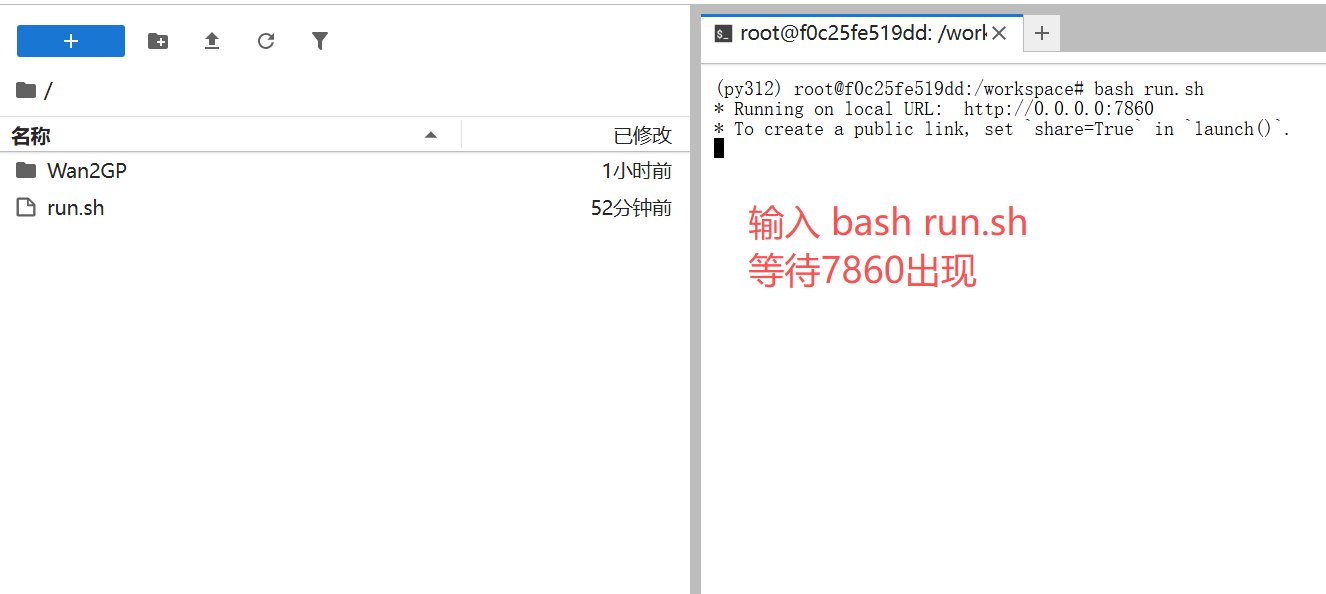 部署示例后,进入JupteyLab 启动 点击webui 选择与运行