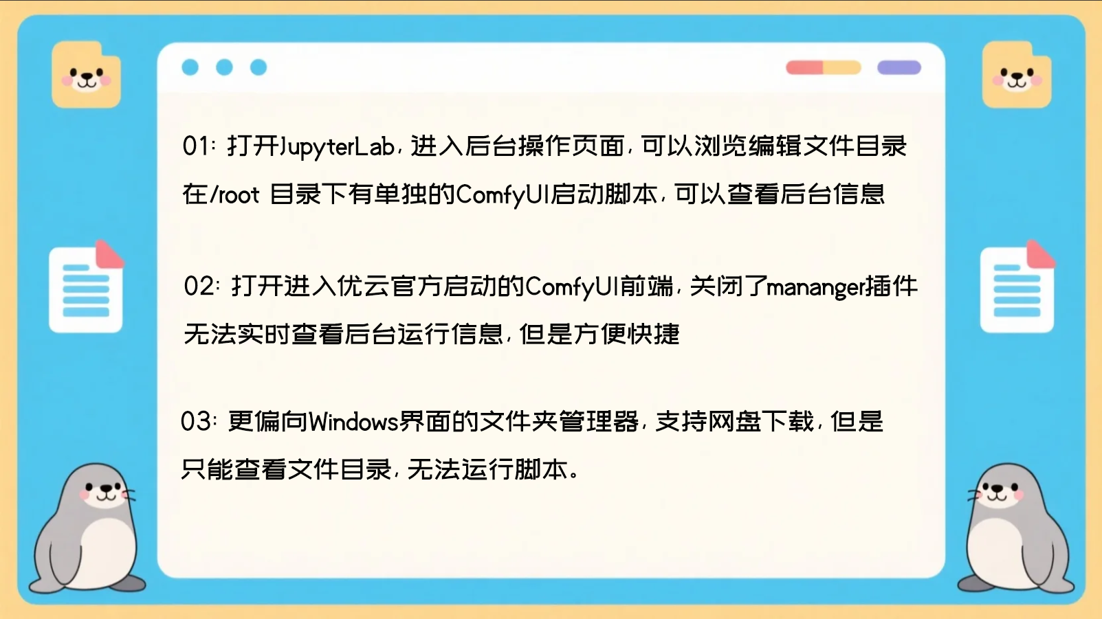 首先点击“JupyterLab”进入后台文件夹,其中Input是上传文件存放的位置,比如图片音频视频等,output文件夹是所有生成文件存放的位置,点击进入output文件夹,选中要下载的文件,右键点击弹出窗口选这下载即可