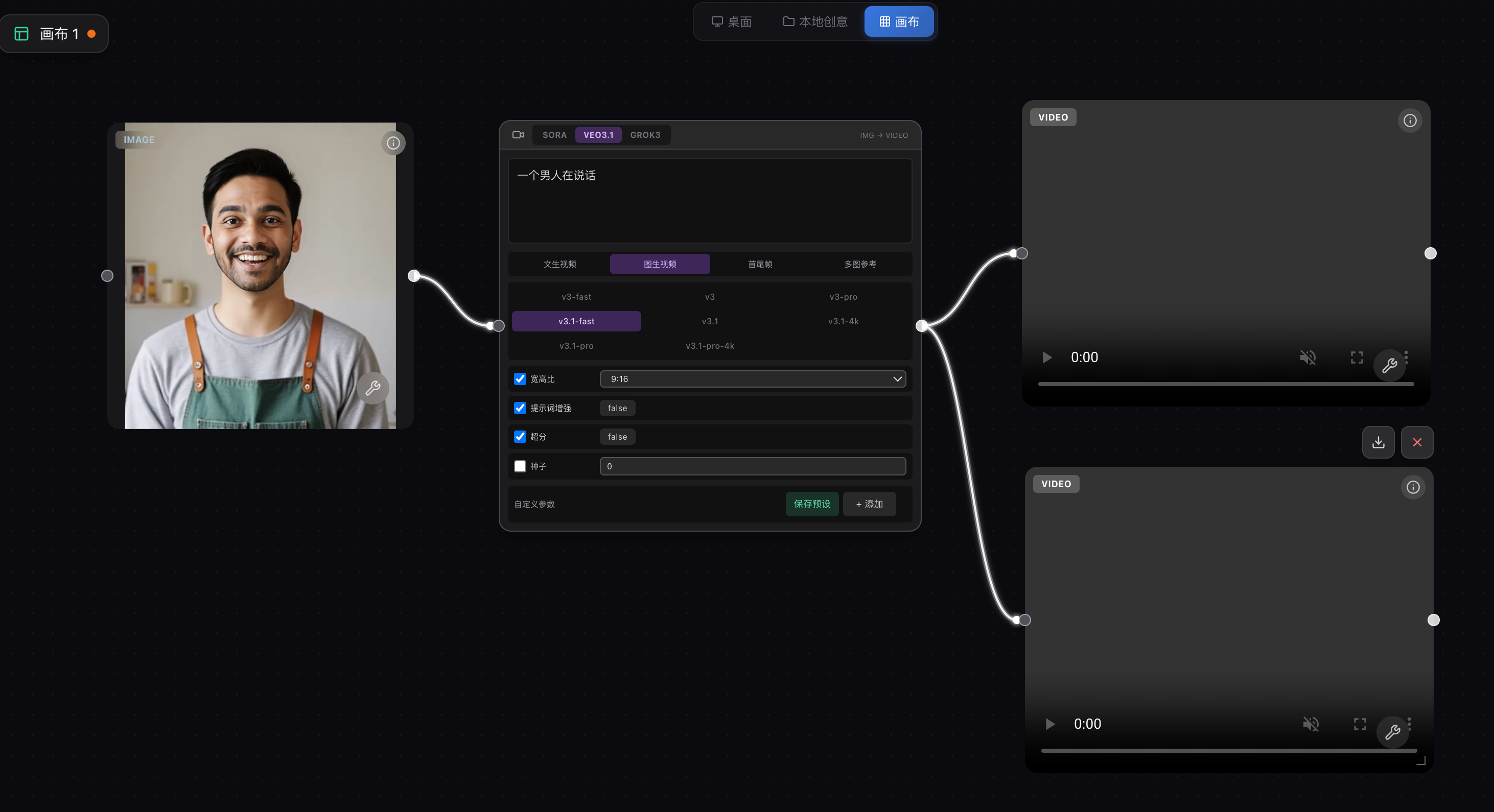 一个可以在线生成 sora2,veo3,grok,谷歌香蕉2等海量API图片视频的无限画布应用