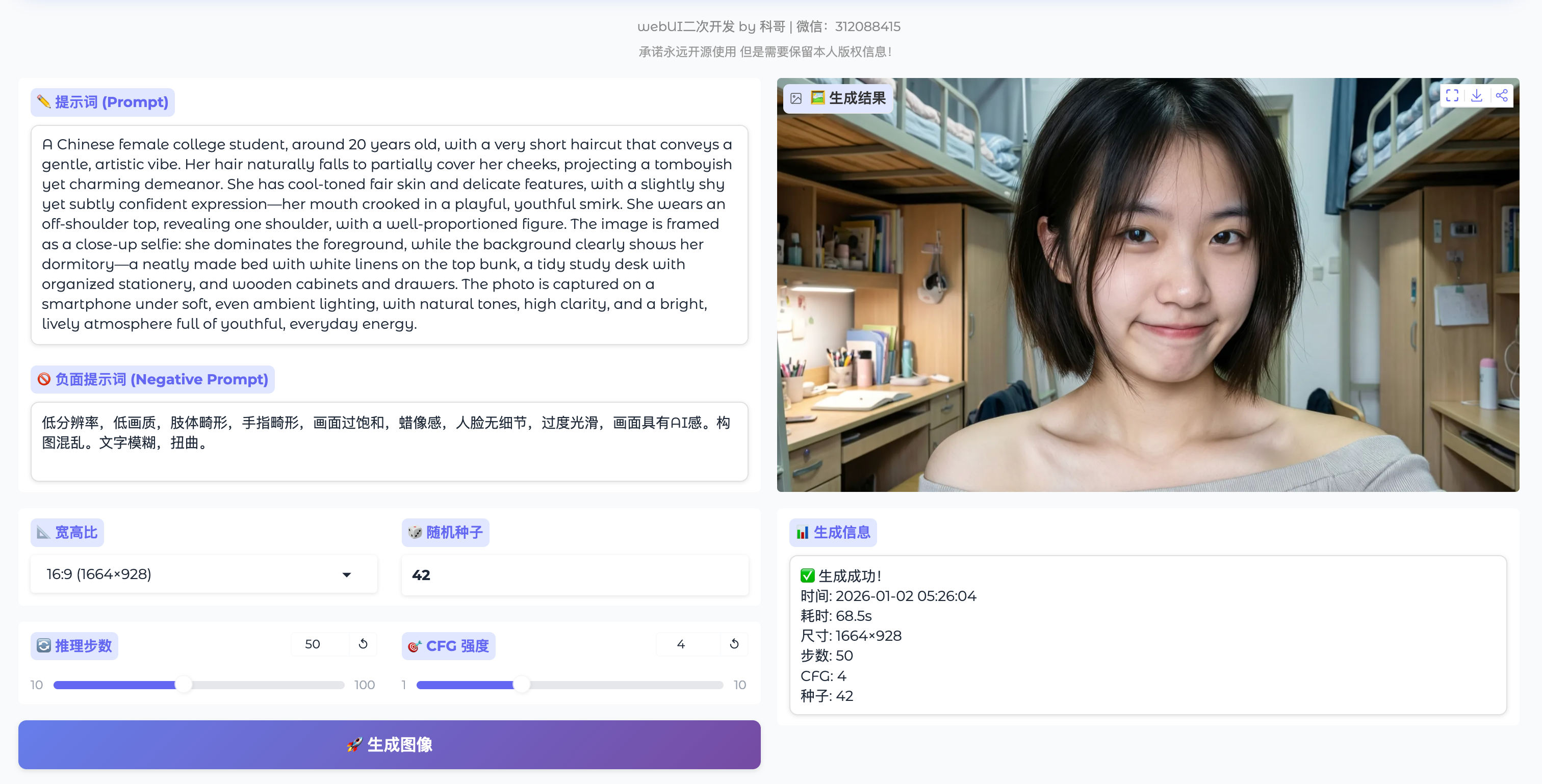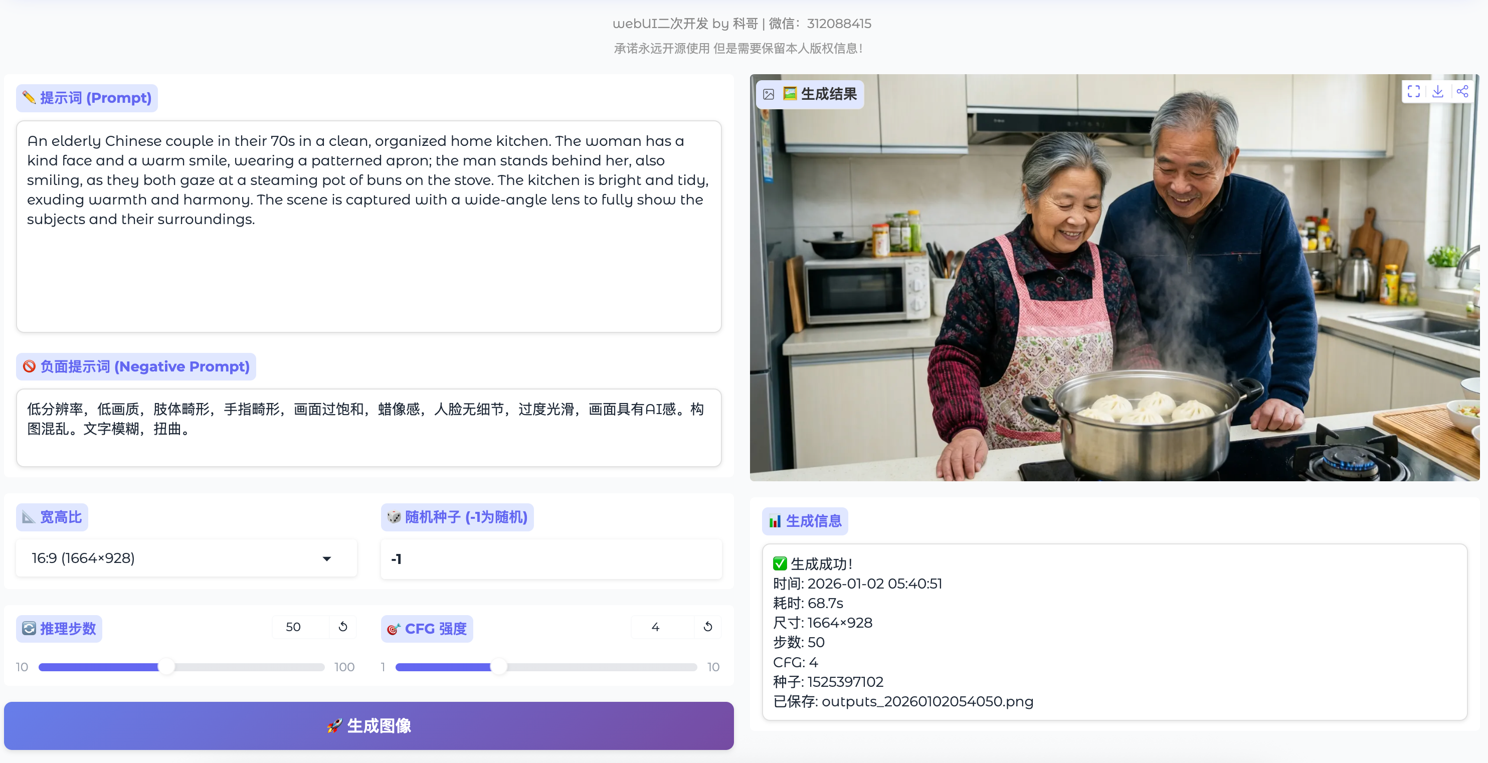 0阿里千问开源Qwen-Image-2512图像生成模型 二次开发构建by科哥