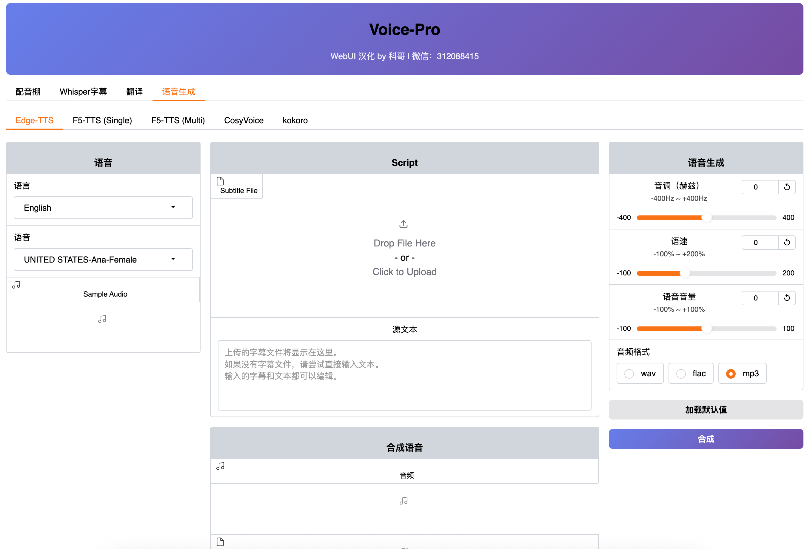 整合了从 外网英文 视频下载、人声分离、语音识别到翻译配音的全流程,支持使用 - WhisperX 进行高精度字幕生成,更能通过 F5-TTS 和 CosyVoice 实现零样本声音克隆。
