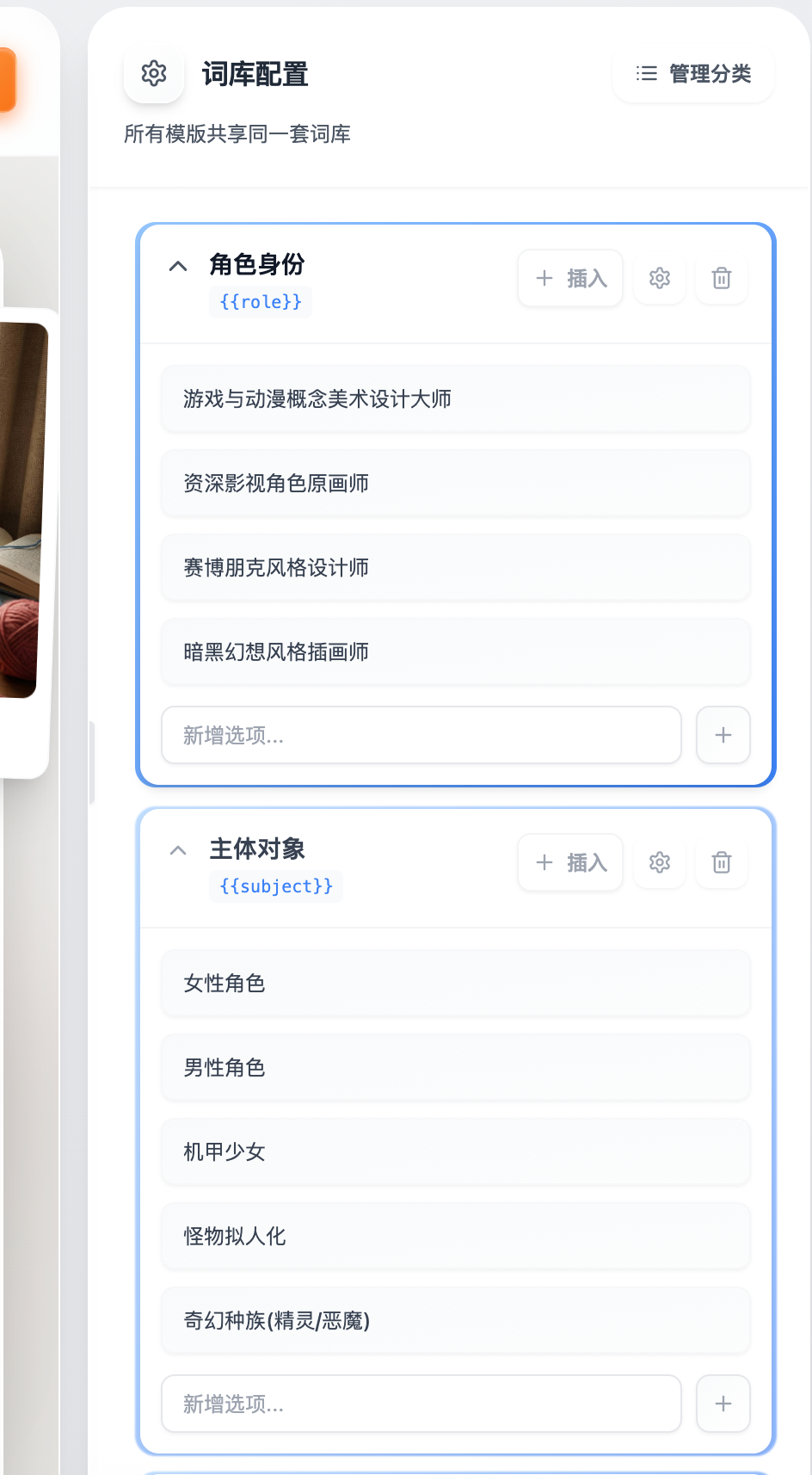 - 最新0.5版本新增了动态预览、长图导出和移动端适配,用户可通过模板变量自由组合生成高质量Prompt,显著降低AI绘画的学习门槛。