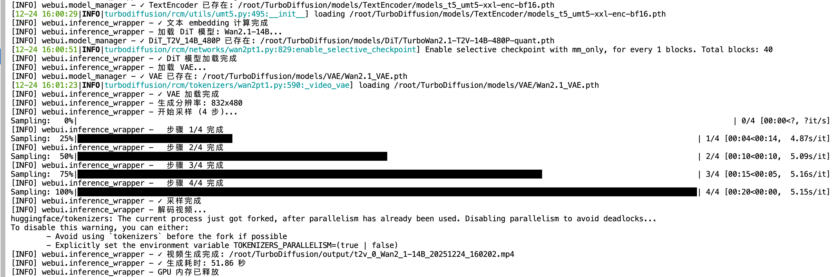 - 框架通过 SageAttention、SLA(稀疏线性注意力)和 rCM(时间步蒸馏)等技术