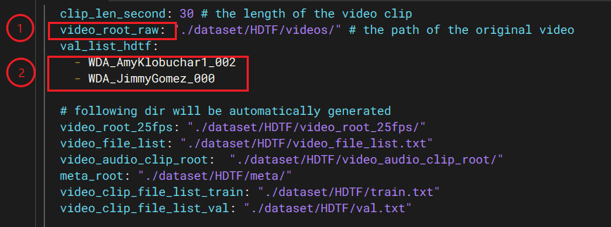 训练视频所在目录,videos文件夹中提供了几个视频素材可做快速验证。/root/MuseTalk/dataset/HDTF目录下有一个videos.zip,是完整的训练视频,可解压后使用。