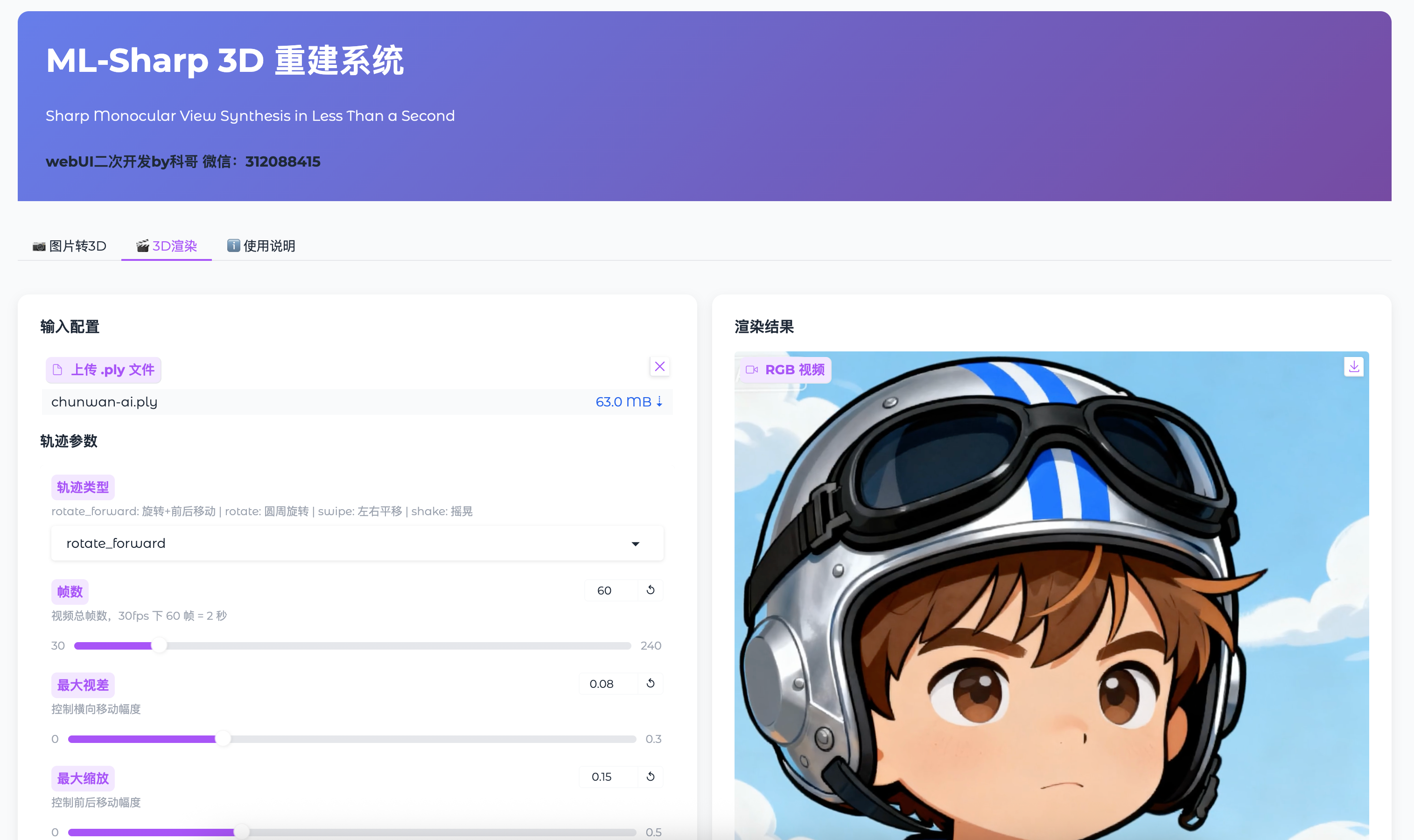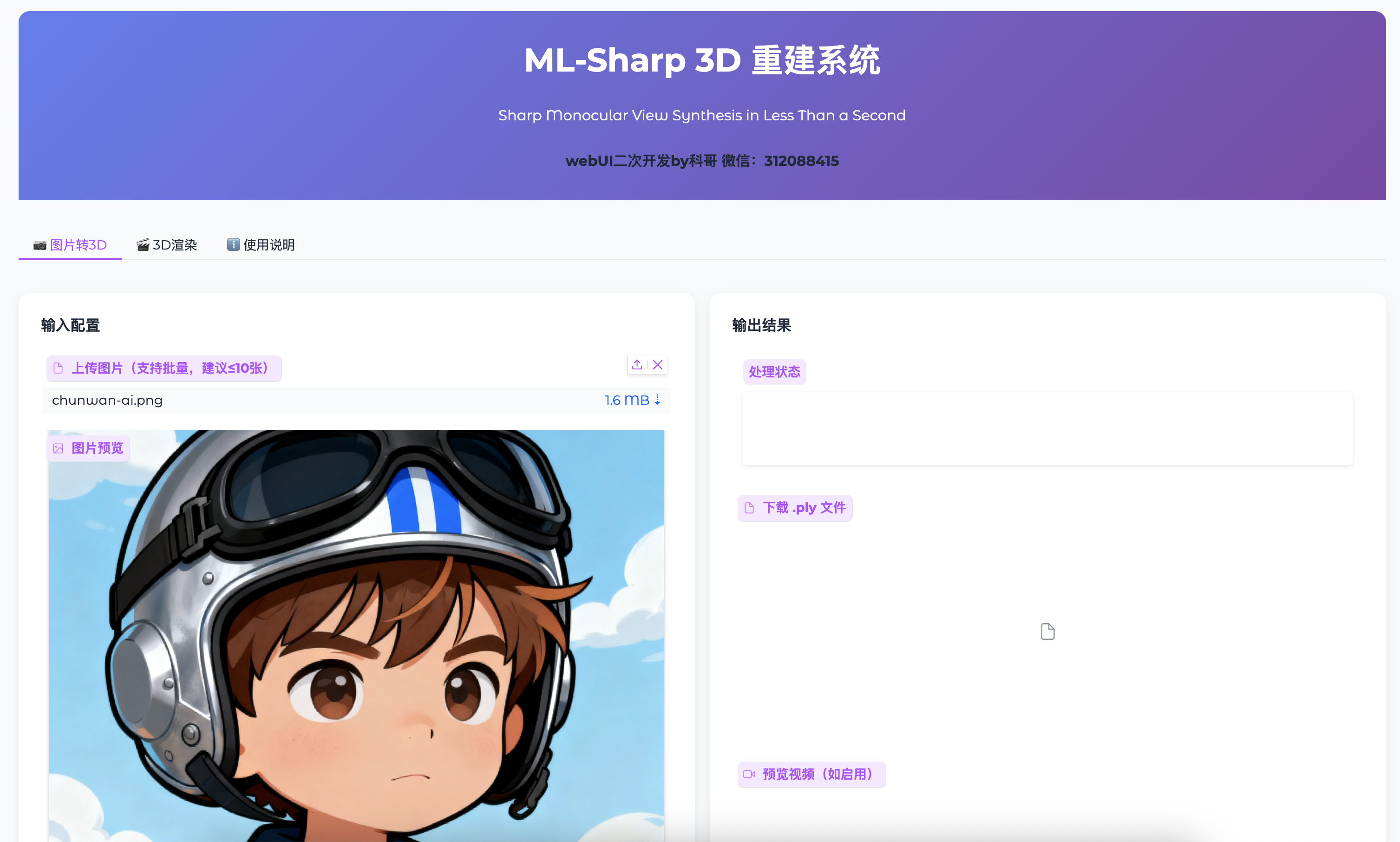 SHARP–苹果开源的3D场景生成AI模型图片转3d模型 二次开发构建by科哥