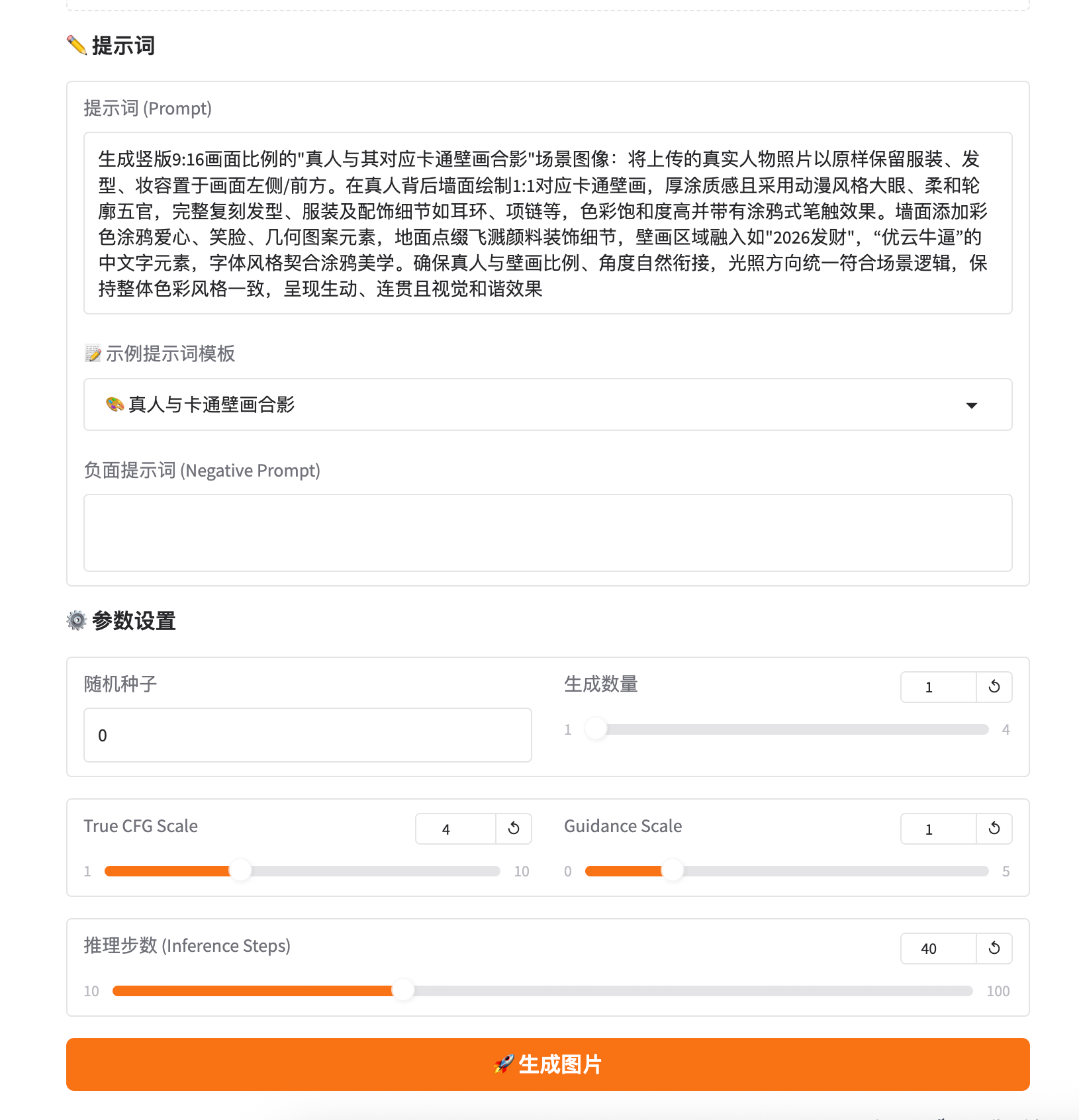 | 生成数量 | 1-4 | 1 | 一次生成的图片数量 |