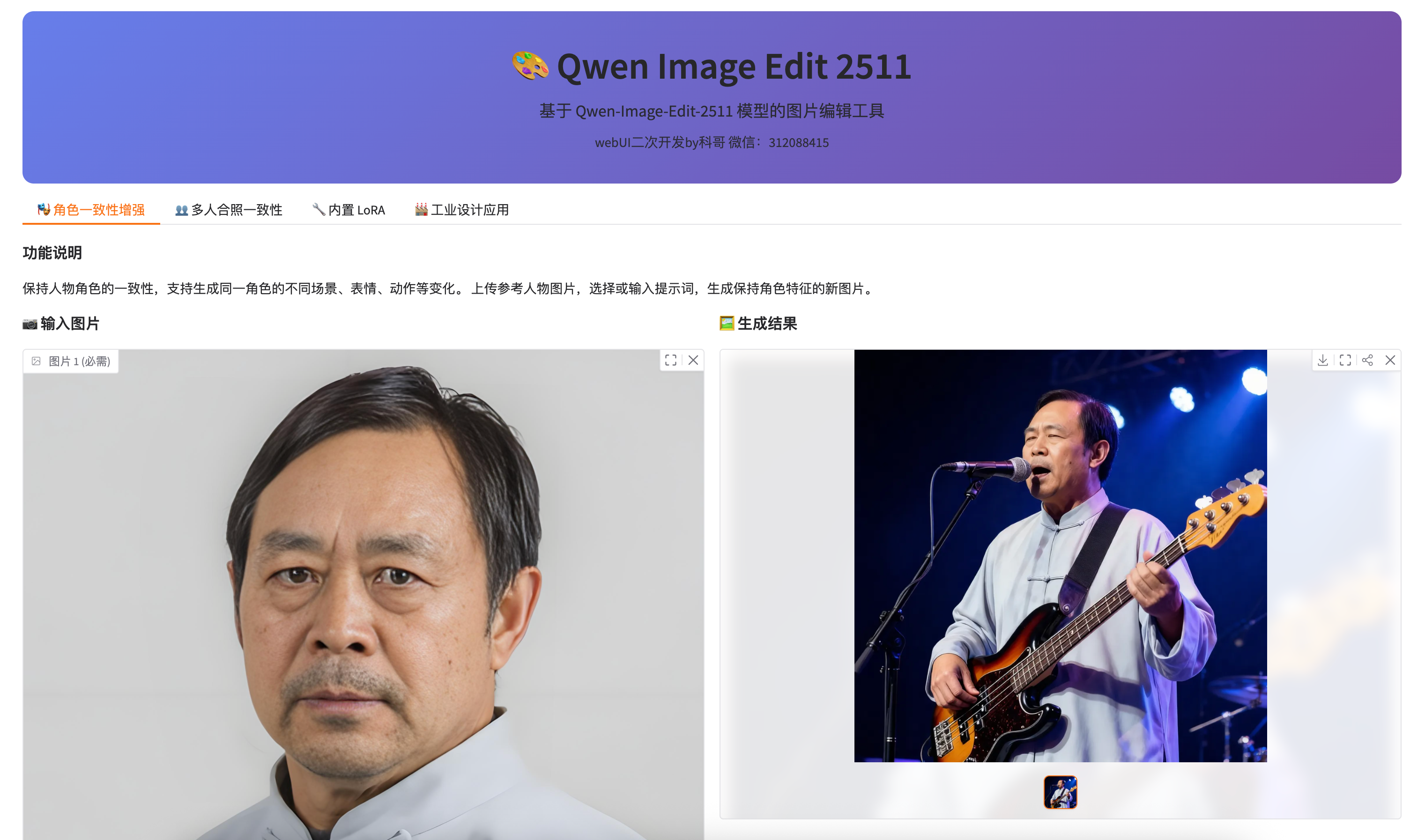 基于Qwen-Image-Edit-2511模型的AI图像编辑工具 webUI二次开发by科哥 微信:312088415
